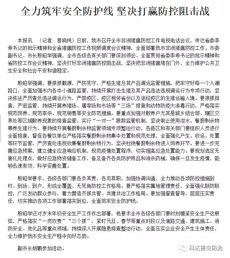 坚决打好非洲猪瘟防控阻击战, 坚决把非洲猪瘟堵在门外, 全力维护公共卫生安全和社会平安和谐稳定 |